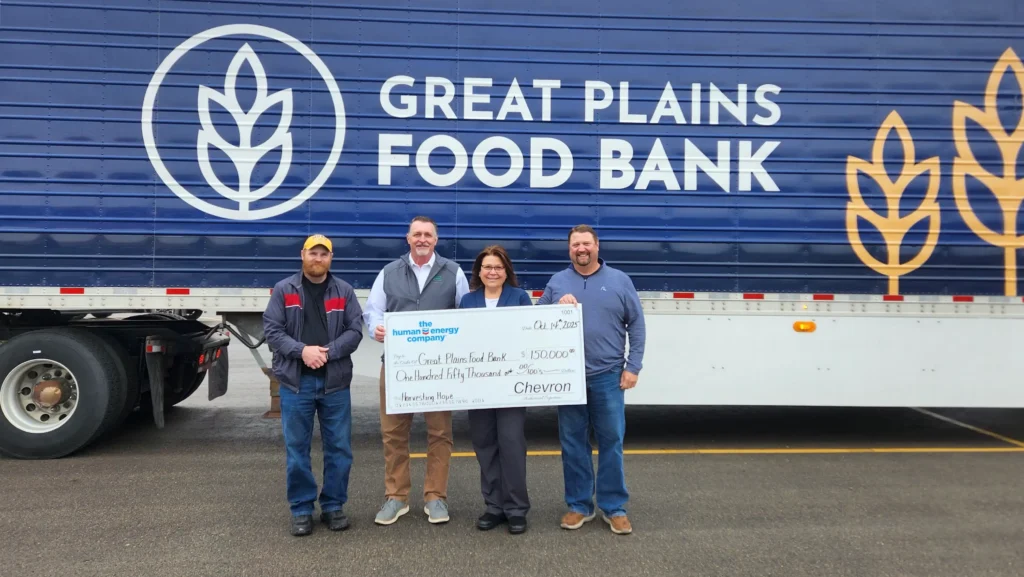 The $150,000 gift from Chevron comes as the Great Plains Food Bank continues its work to fund and equip its new statewide distribution center, a cornerstone of its mission to end hunger together.