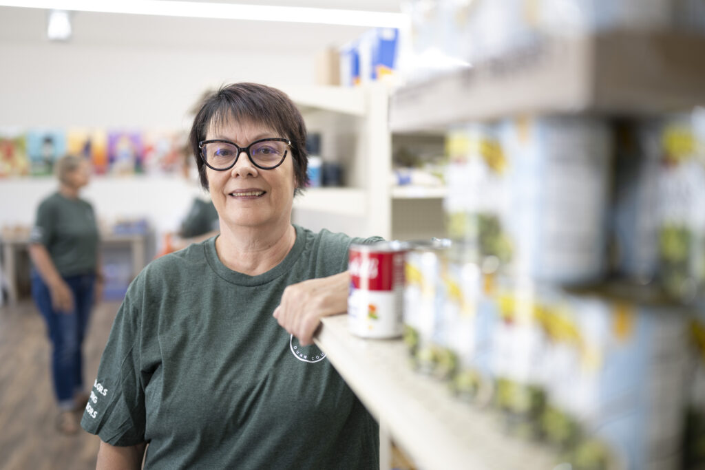 Brenda’s heart for cooking still shines through. When she noticed shelves stocked with salmon that no one was taking, she shared her go-to salmon recipe with a woman who is using salmon recipes to get pantry visitors excited about cooking salmon, “I used to make salmon loaf. … It doesn’t take much, and you put a little cheese over the top and it’s amazing,”