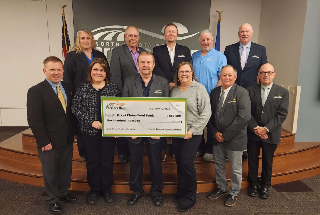 “We are fortunate to be able to make this donation, which comes from the strength of our grassroots organization and our members – the hundreds of family farmers and ranchers who put food on our tables every day,” said North Dakota Farmers Union President Mark Watne.