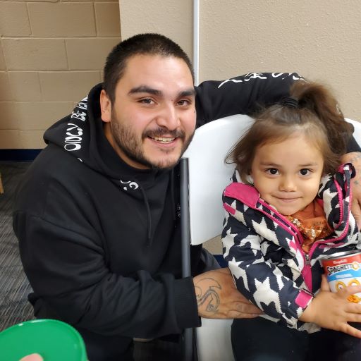 Carlos Sanchez and his two-year-old daughter Amara patiently waited their turn to go through the line and get the food they needed at Ministry on the Margins in Bismarck. It was Carlos’s first time visiting the Great Plains Food Bank partner food pantry.