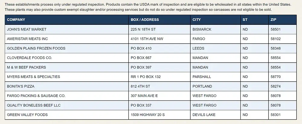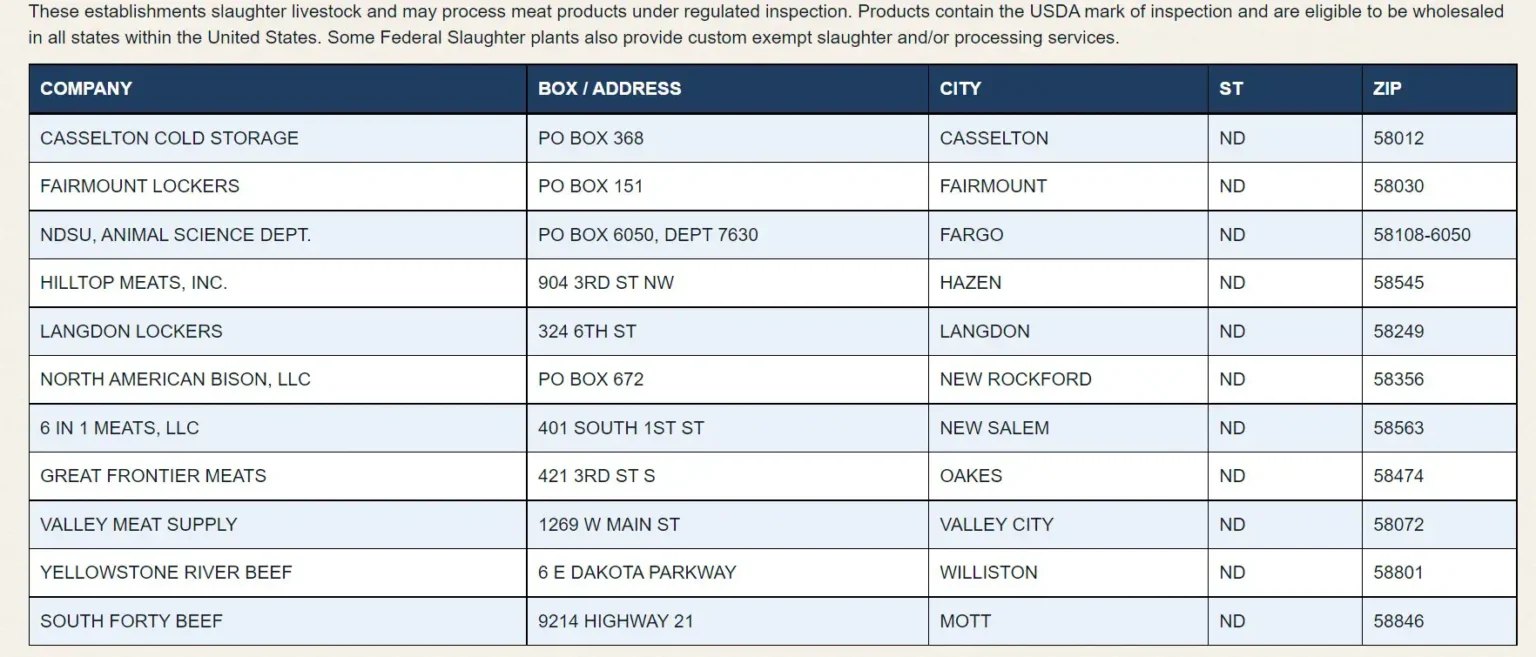 Meat processors in north dakota that have usda inspections