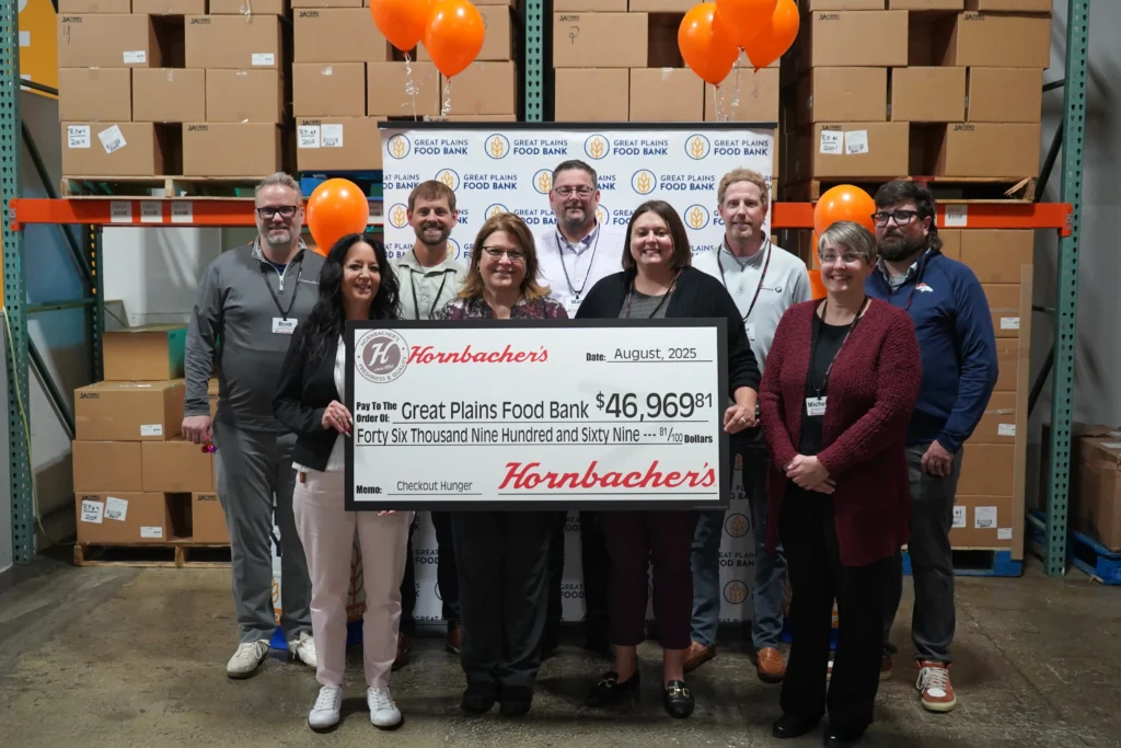 Later in the day, Hornbacher’s presented a check for $46,969.81 from its annual Checkout Hunger campaign, which invited customers throughout July to make donations at the register across all eight Fargo, Moorhead, and West Fargo stores. This gift pushes the total Checkout Hunger contributions to more than $1 million since the campaign began. Combined with Hornbacher’s December Feed Hope campaign, the company has now given over $2 million to the Great Plains Food Bank along with over 13 million pounds of food donations over the years.